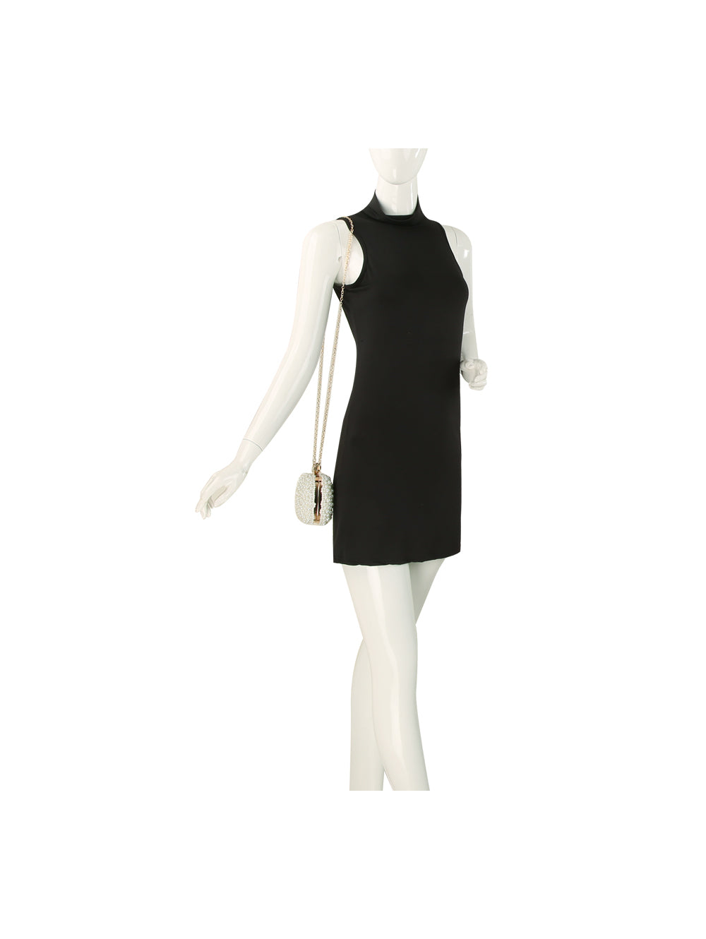 • Faux Pearl beaded Body • Light gold hardware • Top Knob Closure • Shoulder bag • Detachable strap • Depth: 4.5 Height: 1.5 Length: 8