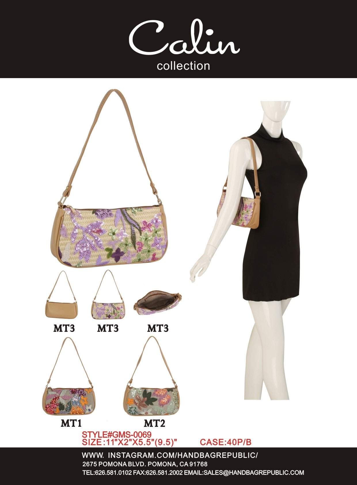 The bag is offered in various floral color palettes, where the base woven material seems consistent, but the beaded embroidery colors change: