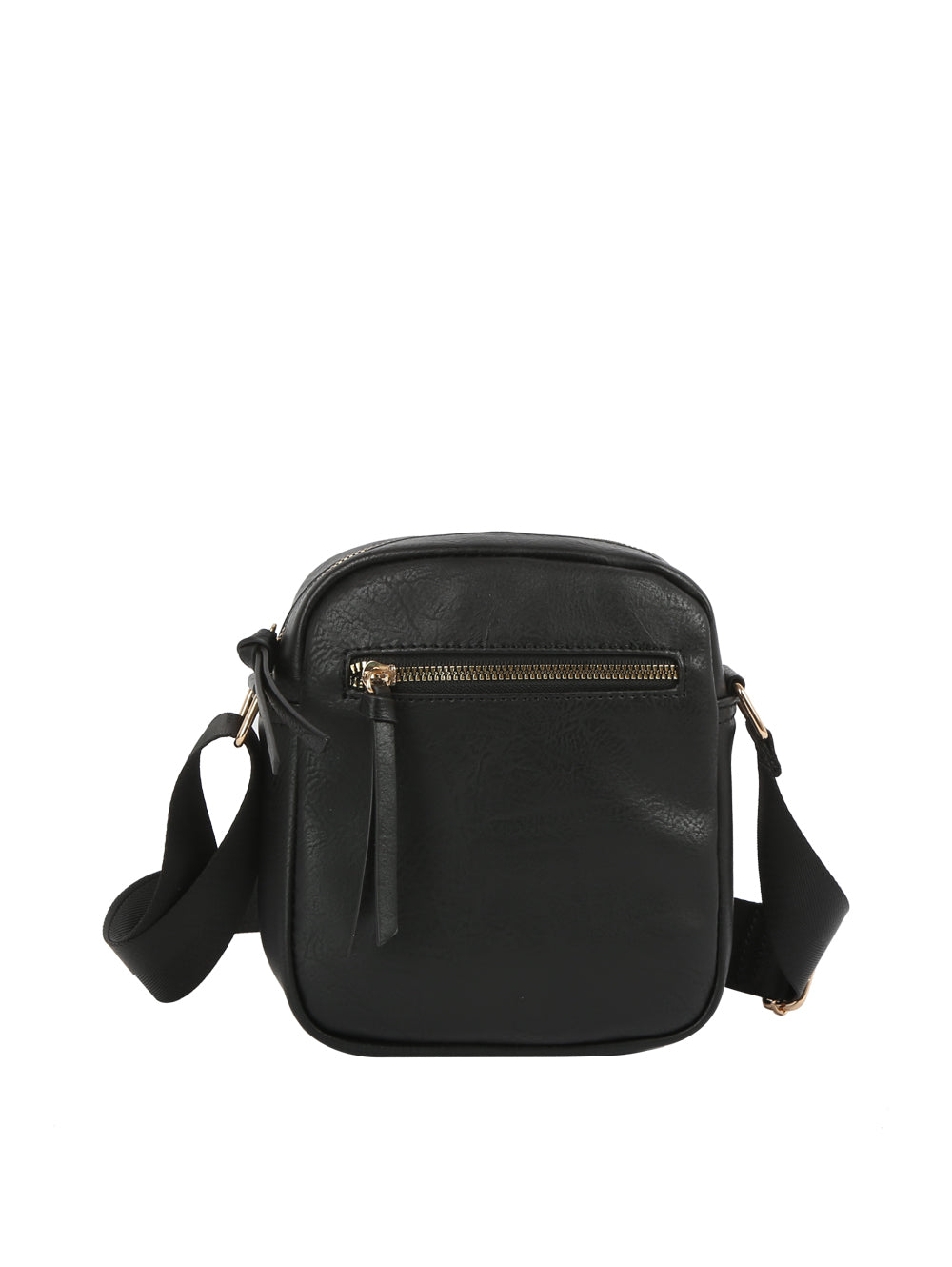 • Faux vegan leather • Light brass hardware • Top zip closure • Shoulder bag • Adjustable shoulder strap • Depth: 7.5 Height: Length: 6.5