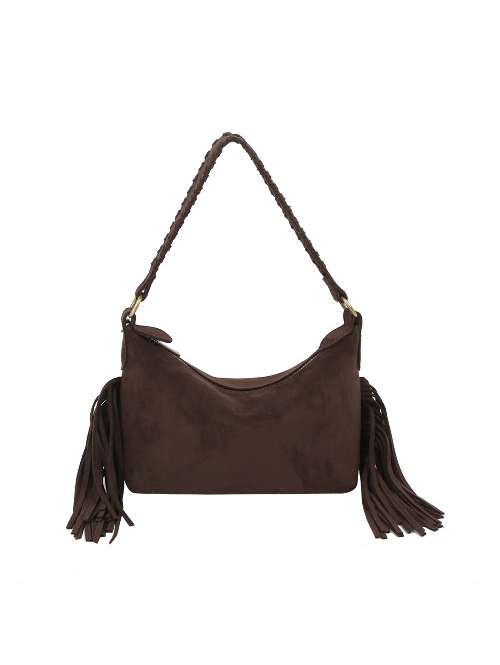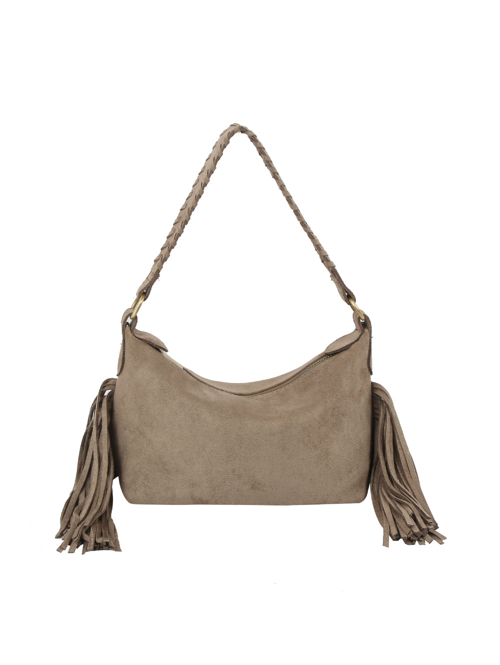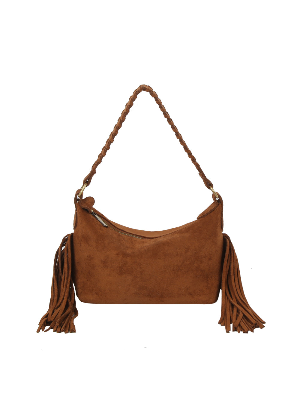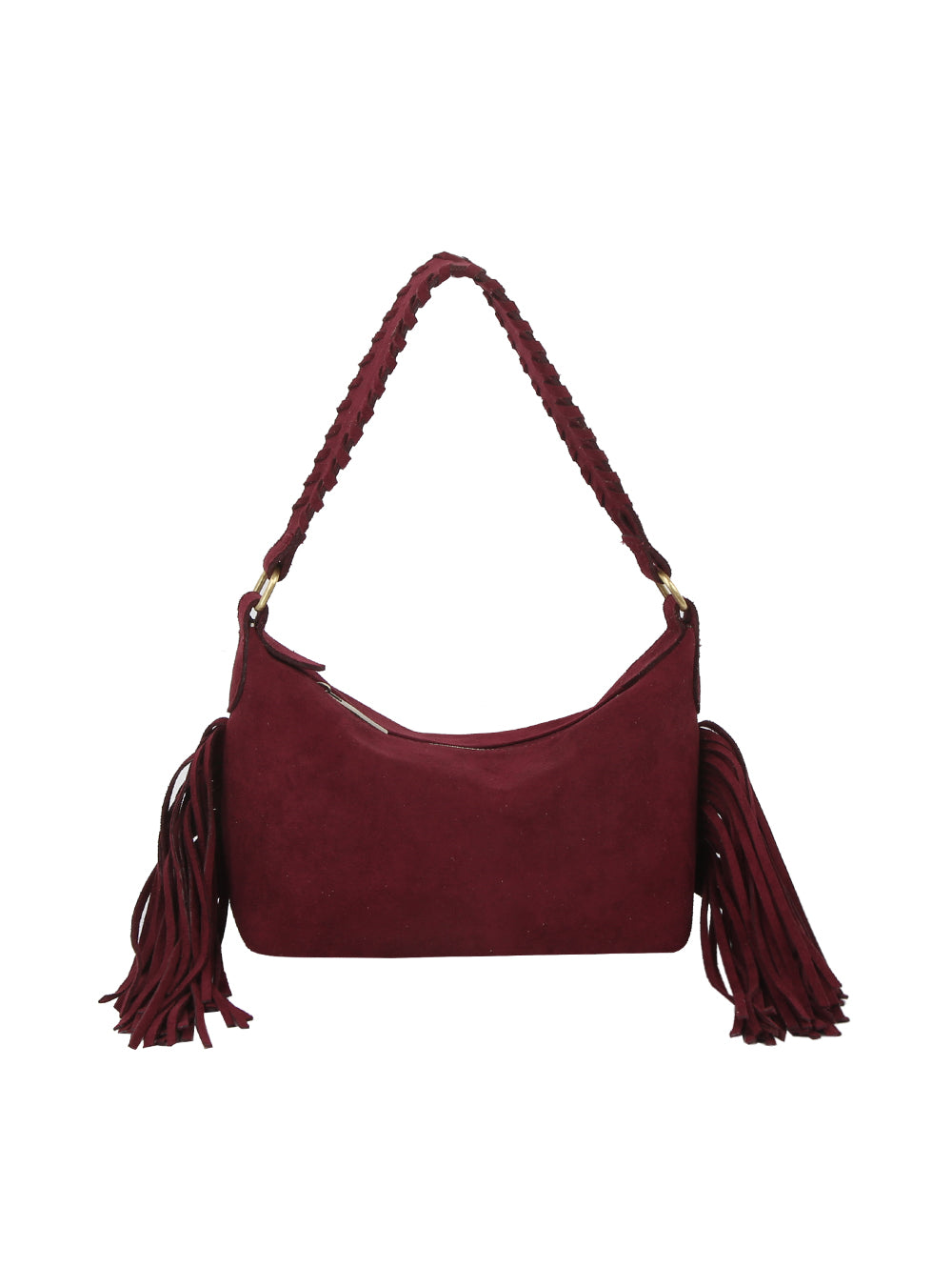 Fringed Hobo Bag with Braided Shoulder Strap